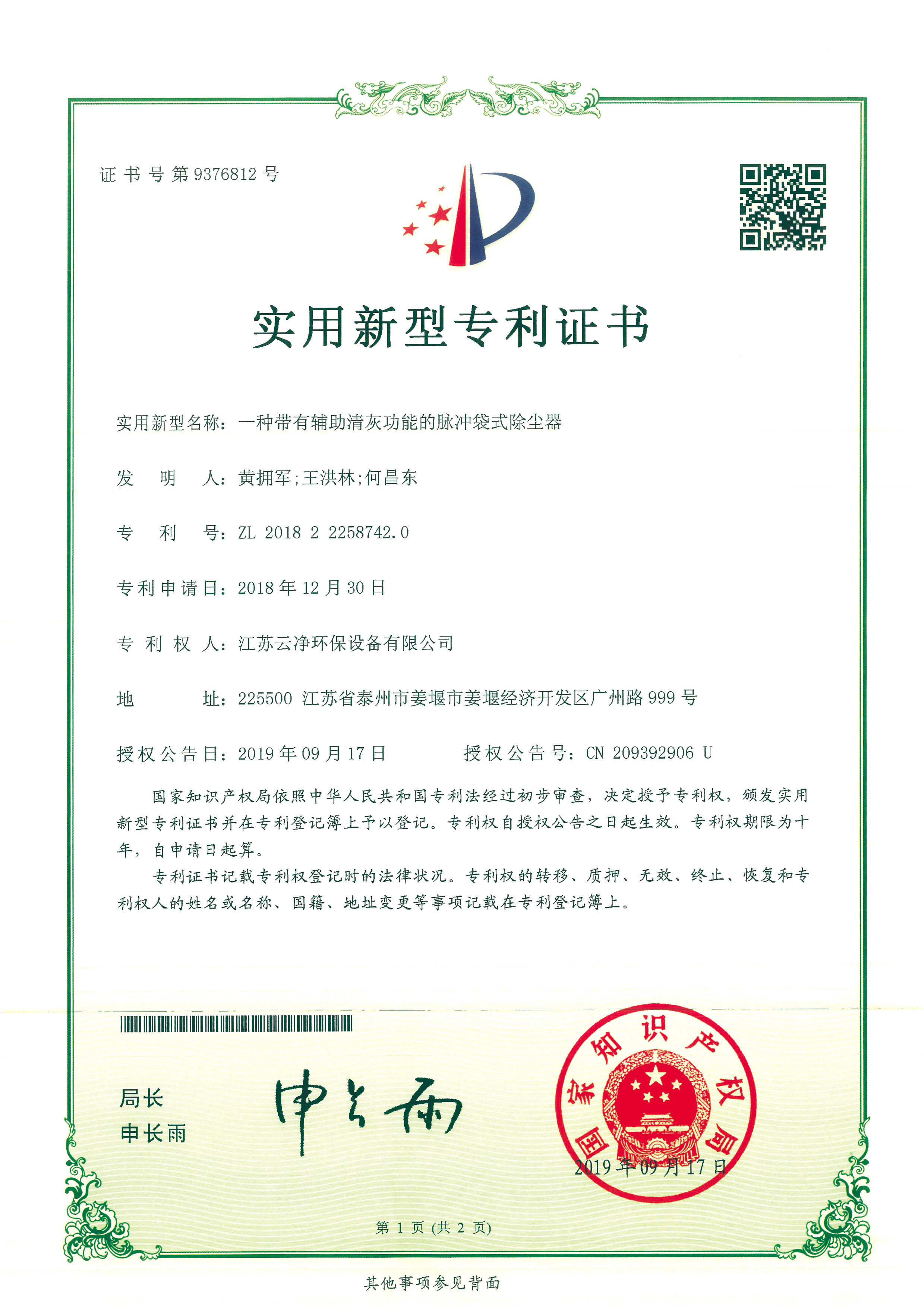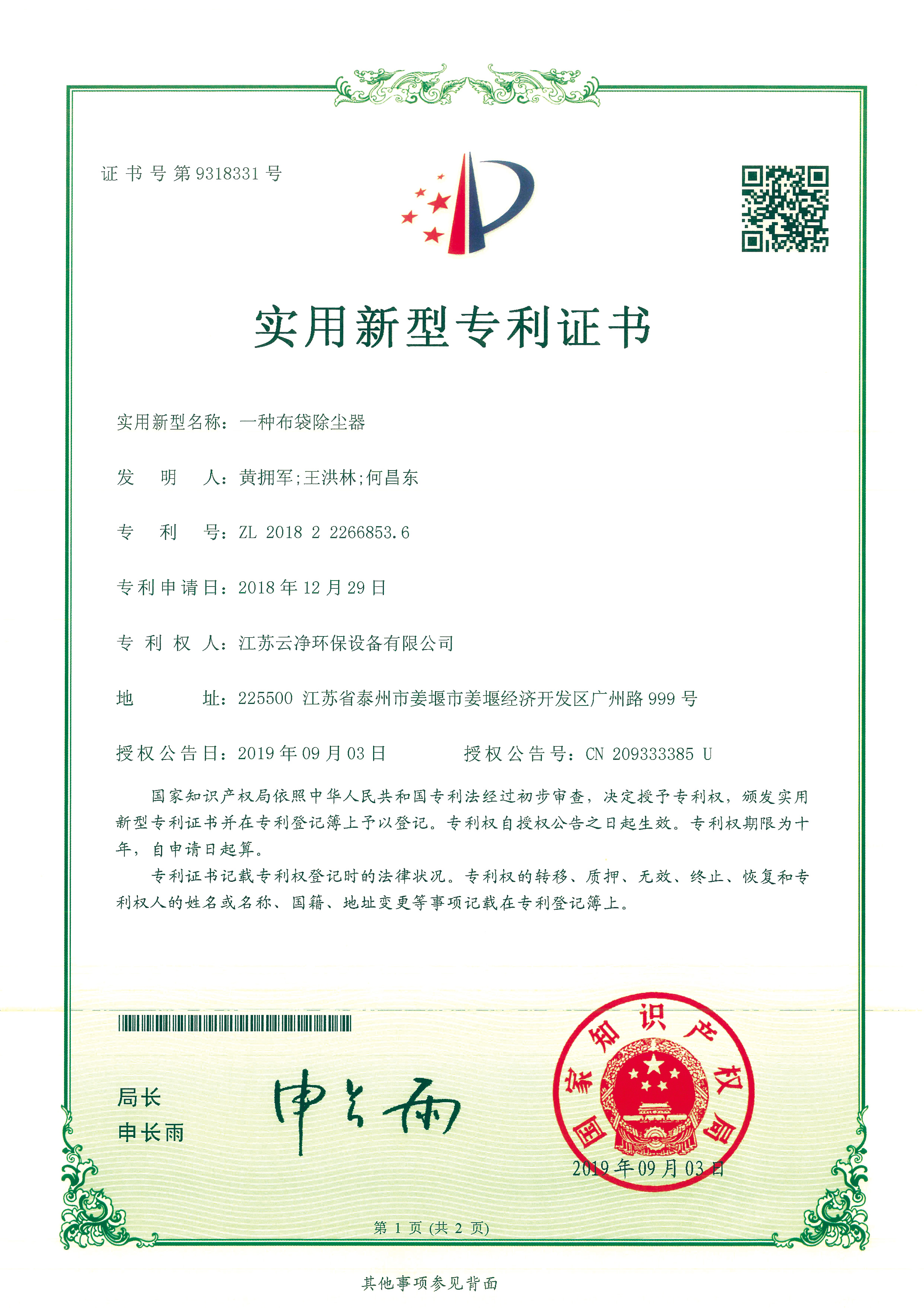 公司先后獲得“江蘇省民營科技企業(yè)”﹑“環(huán)保產(chǎn)業(yè)骨干企業(yè)” 、“重合同守信用AA級企業(yè)” 、通過ISO9001:2015質(zhì)量體系認證、ISO14001:2015環(huán)境管理體系、知識產(chǎn)權(quán)管理體系和ISO45001:2018職業(yè)健康安全管理體系認證,為江蘇省高新技術(shù)企業(yè)。多項產(chǎn)品獲得高新技術(shù)產(chǎn)品認定,擁有發(fā)明及實用新型專利31件(ZL202020254279.7、ZL202020254287.1、ZL202020288783.9等),現(xiàn)有各類除塵設(shè)備﹑脫硫設(shè)備﹑超凈排放設(shè)備八大類近200個規(guī)格產(chǎn)品,特別是開發(fā)出國內(nèi)的有色冶煉系統(tǒng)收砷布袋除塵器,該設(shè)備開創(chuàng)了收砷布袋除塵器先例,本體使用壽命可達十年之久,是國內(nèi)其他設(shè)備無法比擬的。公司具備良好的產(chǎn)品研發(fā)能力,通過與相關(guān)科研院所技術(shù)合作開發(fā)了高效除塵器、燒結(jié)板除塵器、濾筒除塵器、脫硫濕電超凈排放一體化設(shè)備、中低溫脫硝設(shè)備、等離子體除臭設(shè)備等,產(chǎn)品受到用戶的一致好評。